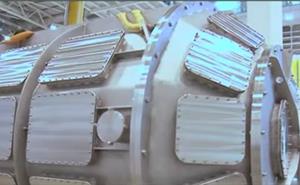 This is the latest arrival. It is part of the Polaris instrument. In target station one, the block house for it is already built and this has just arrived from Spain. Each of these ports will have a detector bank inserted and then the whole lot will be lifted and placed into the beam line. Then the neutron beam will travel through the centre here, into the middle. The experiment is dropped from the top and then the neutrons interact with that and are scattered out to all of the detectors.